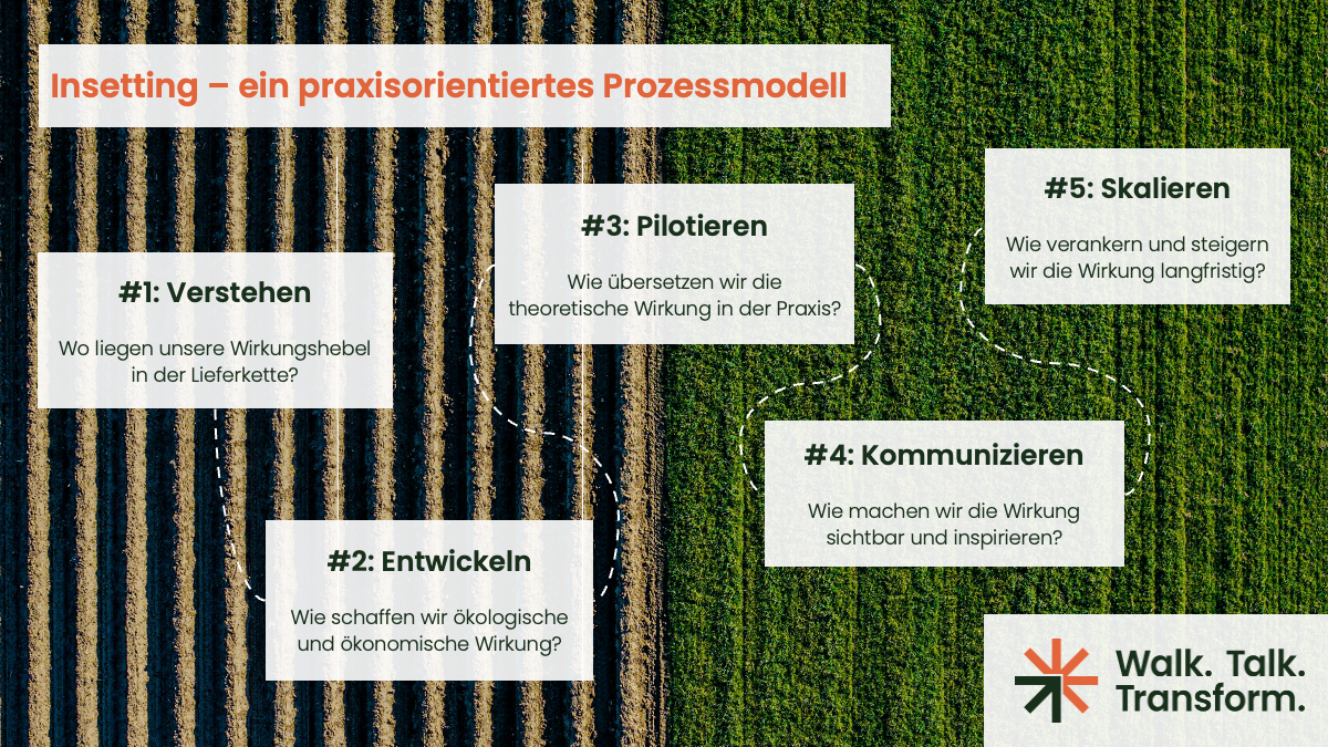 Während Offsetting auf den Ausgleich von Emissionen außerhalb der eigenen Lieferkette setzt, bedeutet Insetting, Geldströme in die eigene Wertschöpfungskette zu lenken – im Kontext der Lebensmittelbranche etwa in landwirtschaftliche Projekte, die CO₂-Emissionen reduzieren, Böden regenerieren und Biodiversität fördern können.